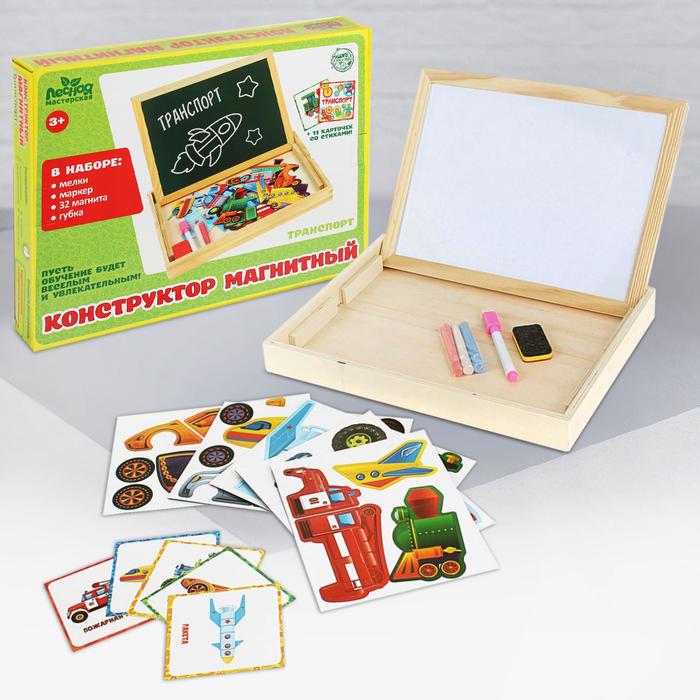 Конструктор магнитный "Транспорт", в деревянной коробке