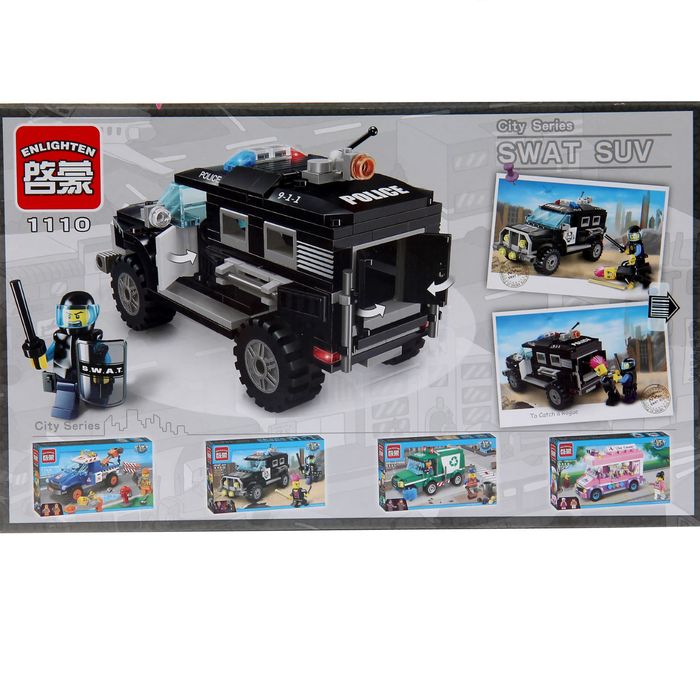 С конструктором «Полицейский спецназ» серии Brick малыш представит себя стражем порядка, будет отслеживать всех нарушителей закона, ловить преступников на супербыстром автомобиле и обеспечивать покой мирных граждан.
