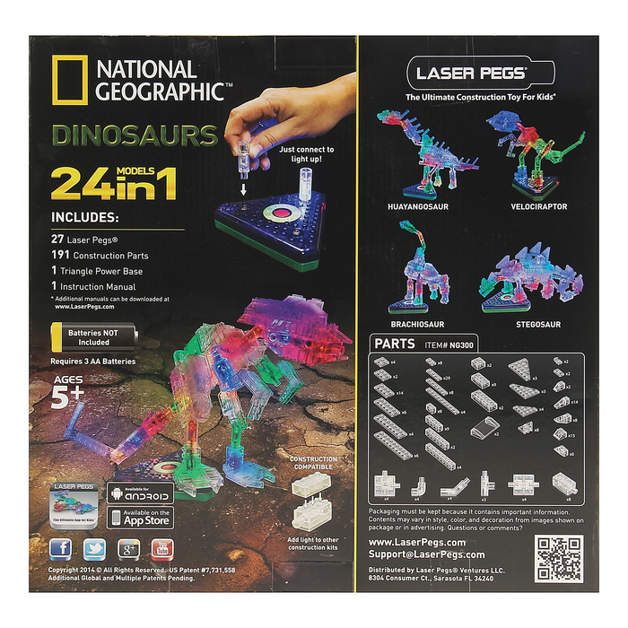 Ребенок будет в восторге от игрушек, которые он соберет сам своими ручками. Инструкция по сборке имеется, она поможет ему сотворить 24 вида уникальных животных: дилофозавра, мозозавра и др. Большую реалистичность им придают элементы со светодиодами. В темноте они выглядят особо эффектно, переливаясь разными огоньками. Игрушка будет служить в качестве ночника, освещающего и преображающего интерьер детской, переносящего вас в таинственную мезозойскую эру.
