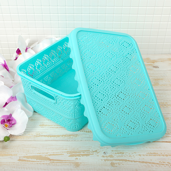 Контейнер для хранения с крышкой 29х20х12 см "Ажур", цвет голубой