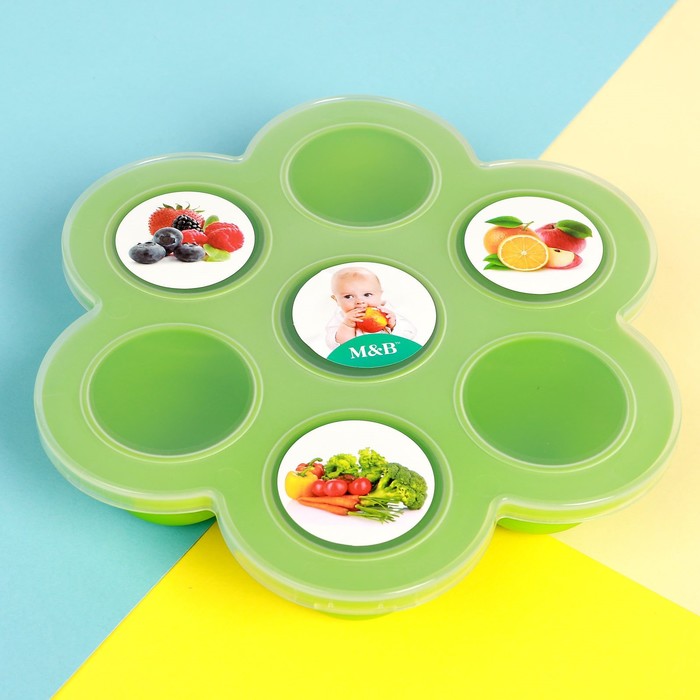 Контейнер пищевой силиконовый для хранения детского питания, 7 секций, цвета МИКС