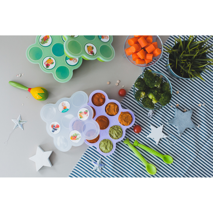 Контейнер пищевой силиконовый для хранения детского питания, 9 секций, цвета МИКС