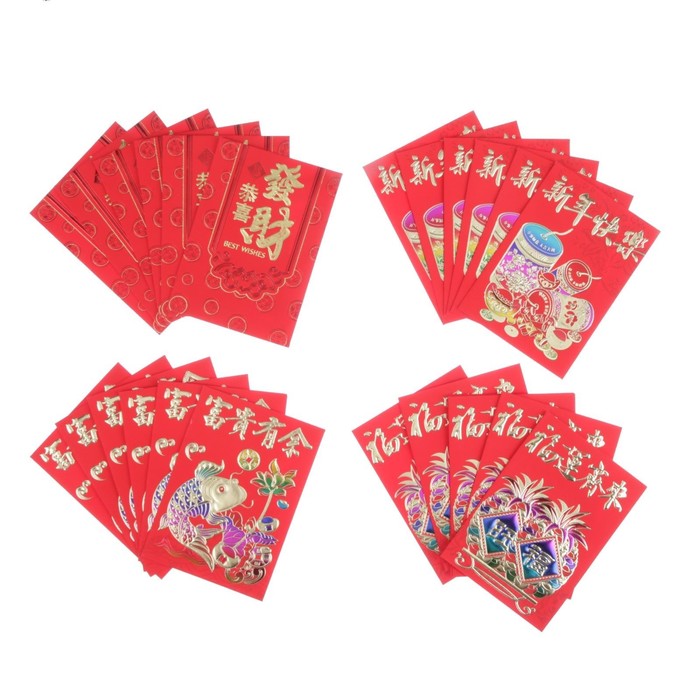 Конверт для амулета красный "Золотые рисунки" набор 6 шт МИКС 7х10 см
