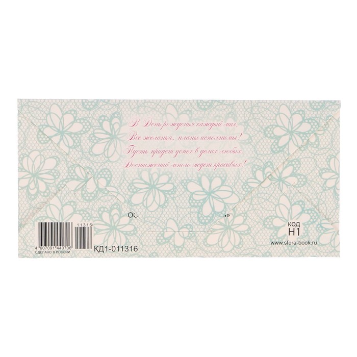 Конверт для денег "С Днём Рождения!" анютины глазки