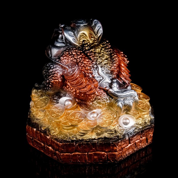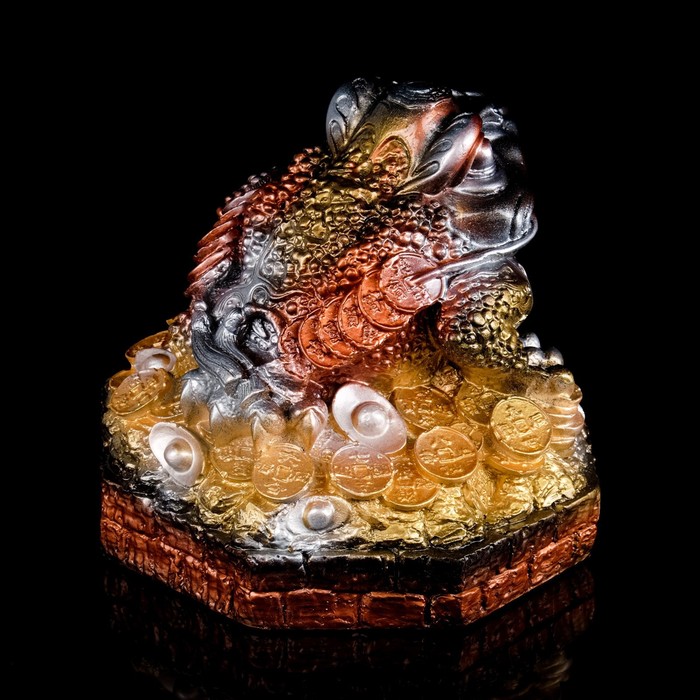Трёхлапая жаба с монеткой во рту является очень сильным денежным талисманом, который приносит богатство, финансовую удачу и процветание. Иногда это животное используют как символ долголетия, потому что некоторые их виды живут до 40 лет.Согласно фэн-шуй копилки с деньгами целесообразно хранить в западной или северо-западной частях помещения.