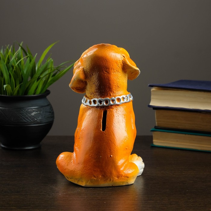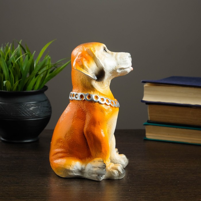 Копилка гипс "Собачка рыжая с цепью" 18 см