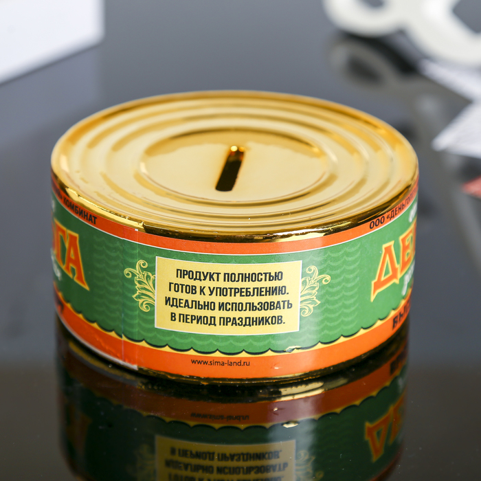 Копилка керамика консерва "Отборная деньга золотистая" 5х11х11 см