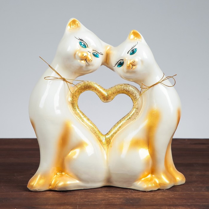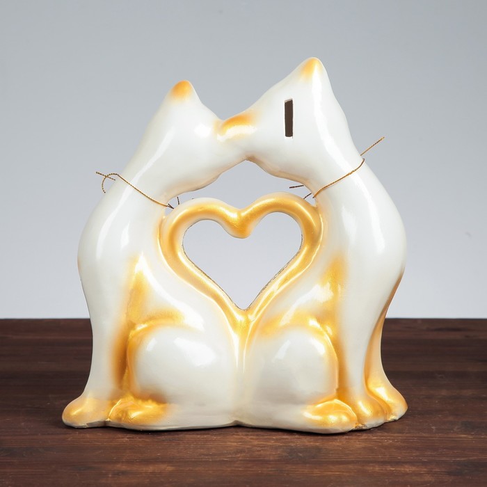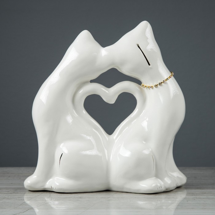 Копилка "Кошки" в форме сердца, большая, глянец, цепочка, микс