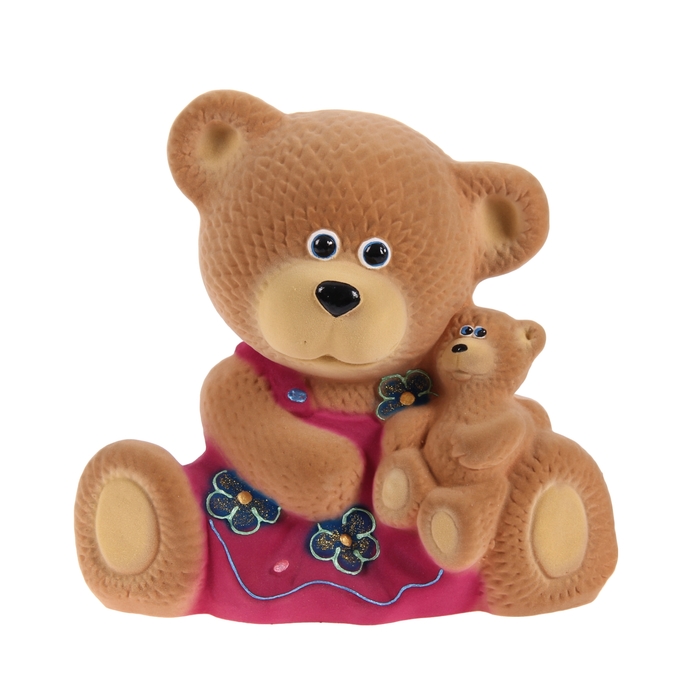 Копилка "Медведица с малышом" флок, бежевая, микс