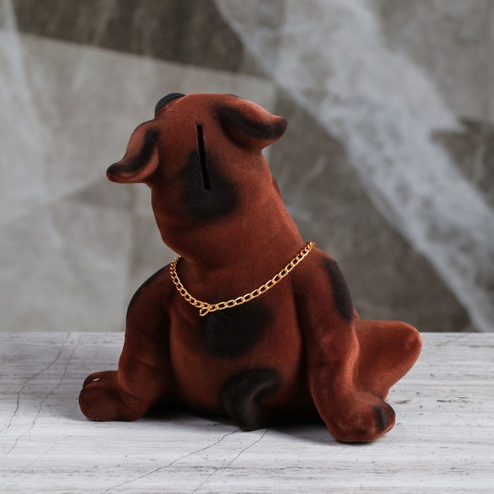 Копилка "Пес Толстопуз" малая, флок, коричневая
