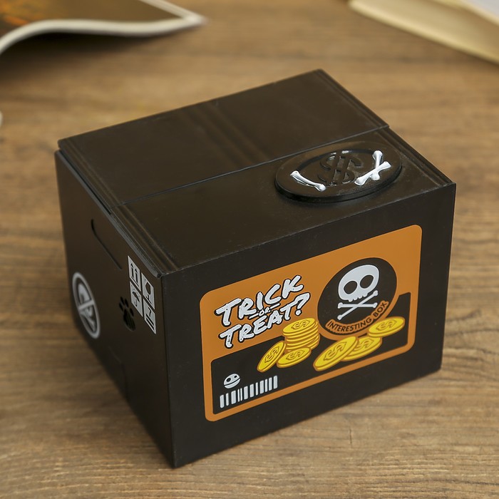 Копилка пластик "Скелет, прятающий монетки" от 2АА звук 9,5х12х10 см
