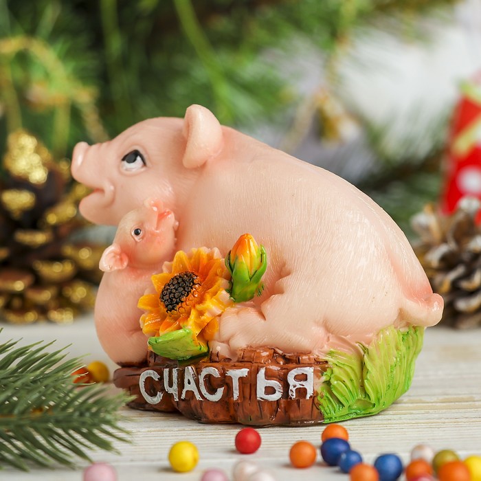 Копилка полистоун "Хрюшка с деткой" МИКС 8,3х9,5х8 см