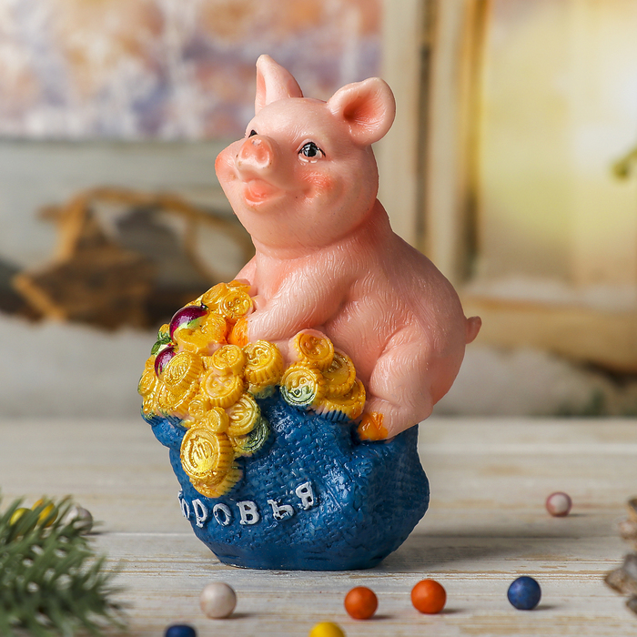 Копилка полистоун "Поросёнок с монетами и самоцветами" МИКС 11х6,8х6 см