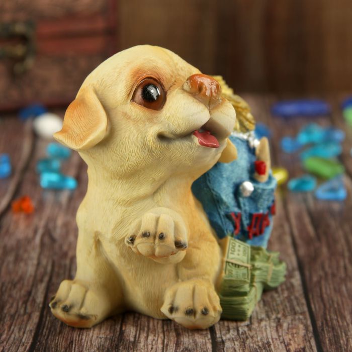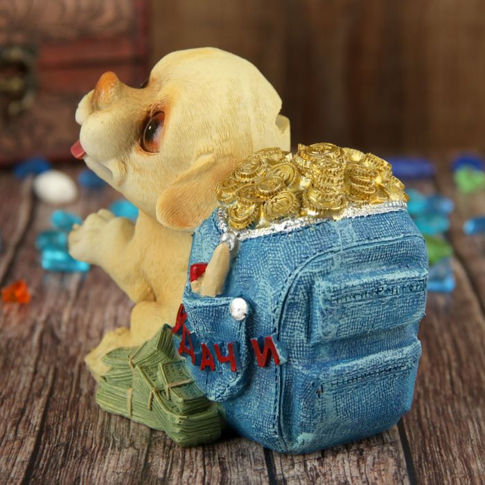 Копилка полистоун "Щеночек с рюкзаком золотых монет - Удачи" 11,2х13,8х8,6 см