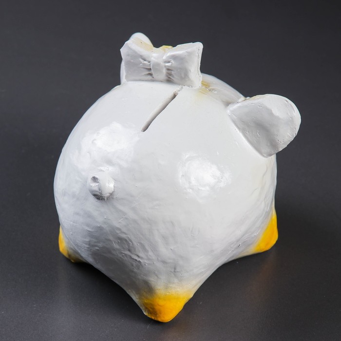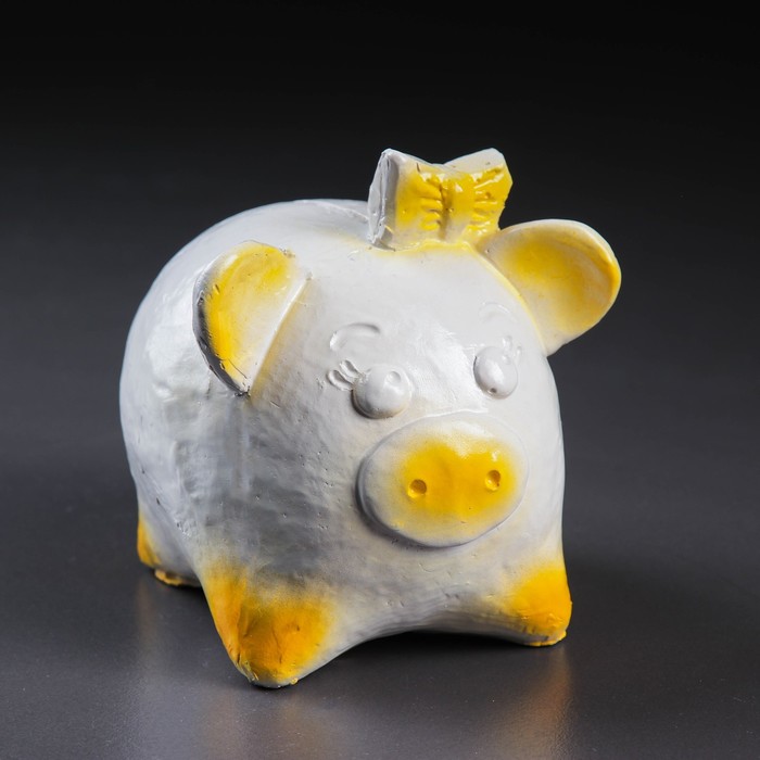 Копилка "Поросенок девочка с бантом" 14х12х13см, бело-желтая