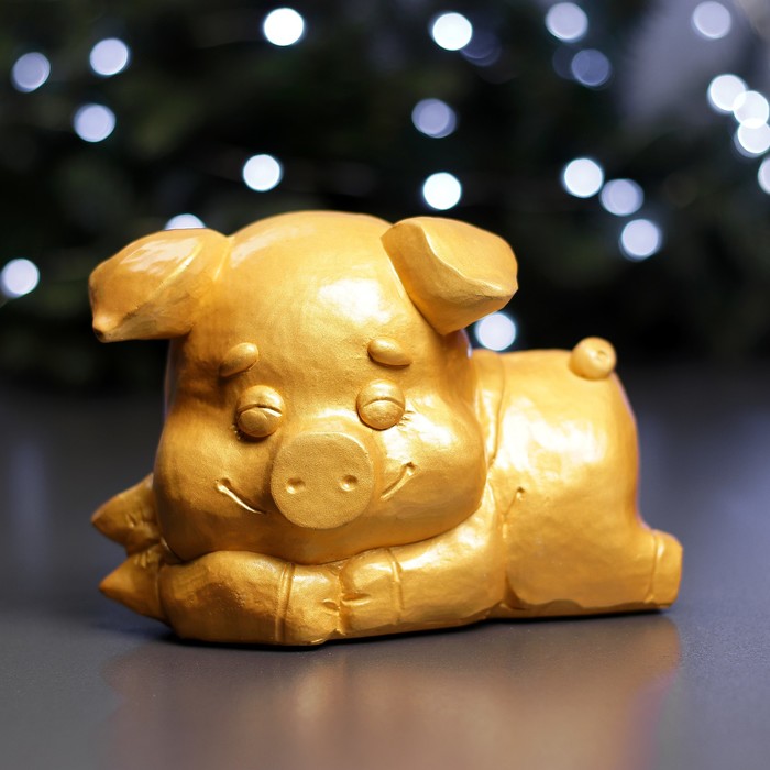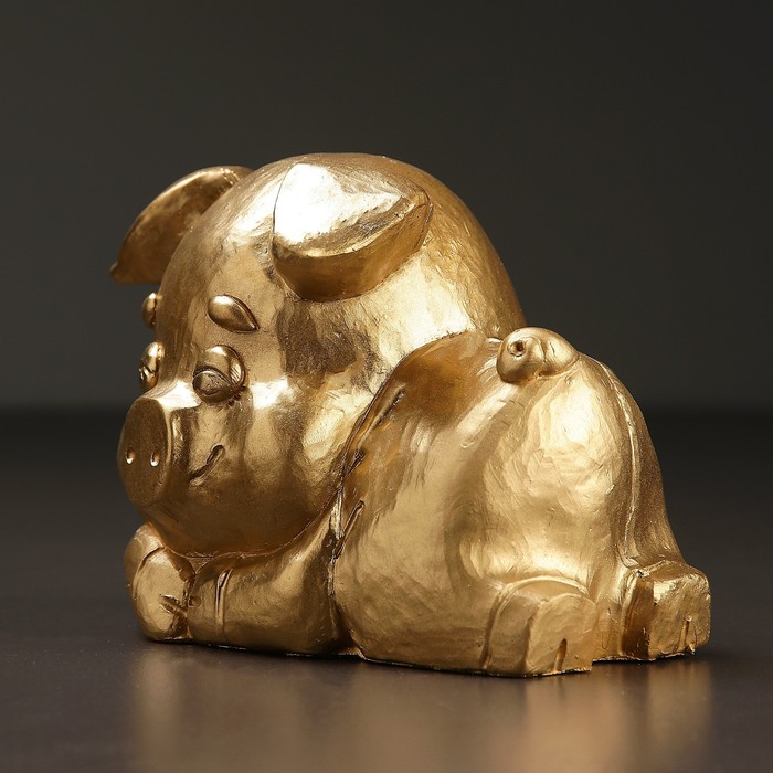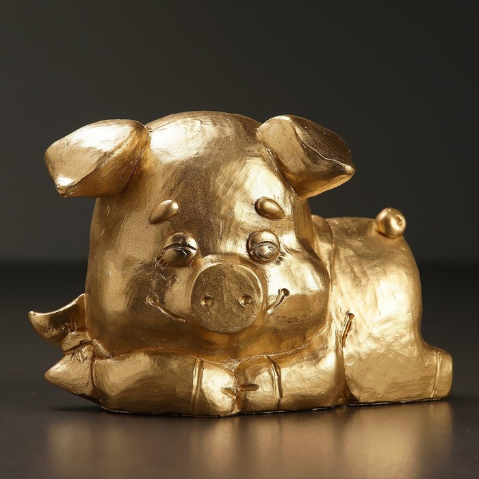 Копилка "Поросенок лежачий с бантом малый"12х17см золото