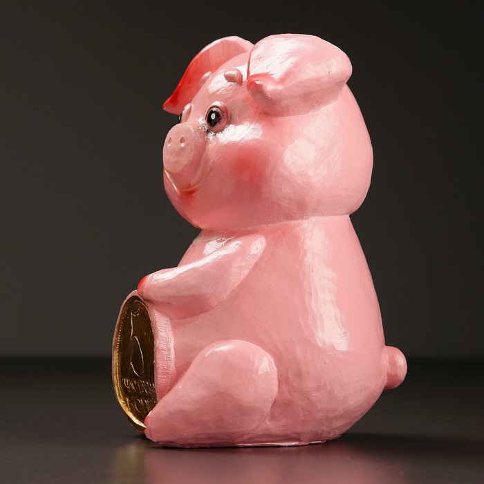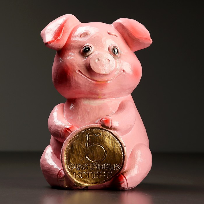 Копилка "Поросенок с монетой: 5 счастливых копеек" 25см розовый
