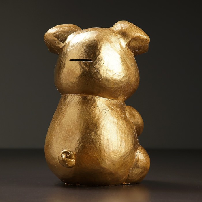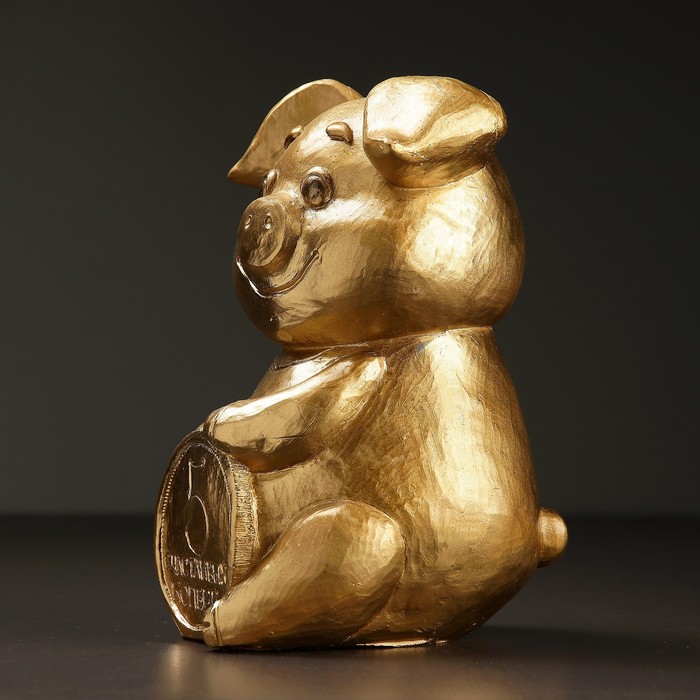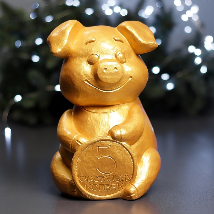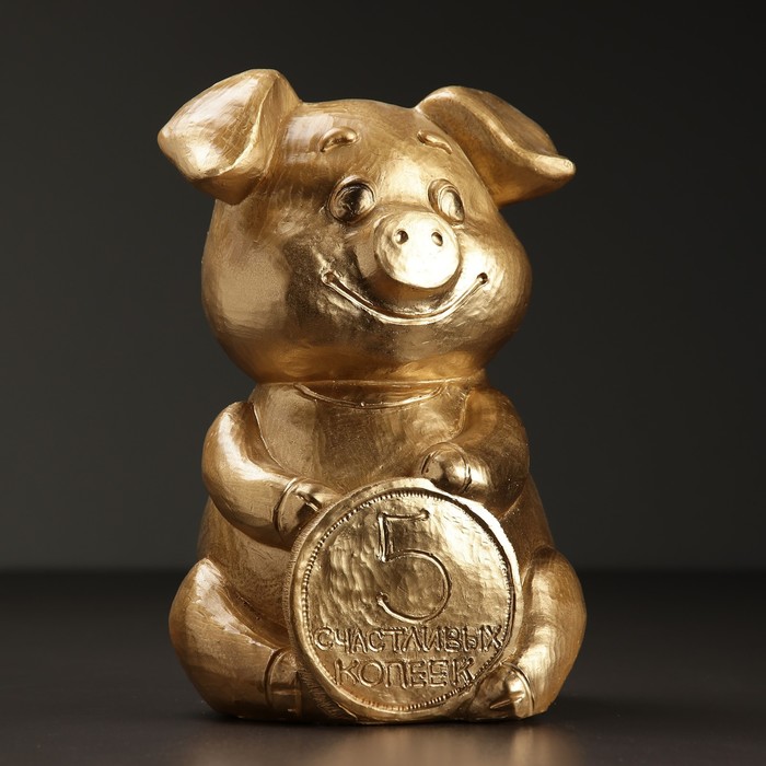 Копилка "Поросенок с монетой: 5 счастливых копеек" 25см золото