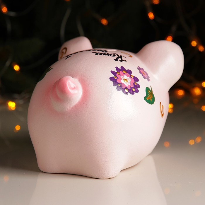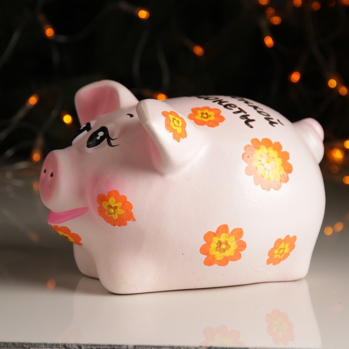 Копилка — универсальный вариант подарка любому человеку, ведь каждый из нас мечтает о какой-то дорогостоящей вещи и откладывает или собирается откладывать деньги на её приобретение. Вместительная Копилка "Поросёнок средний" х/р 22х13см цветы станет прекрасным хранителем сбережений и украшением интерьера. Она выглядит так ярко и эффектно, что проходя мимо, обязательно захочется забросить пару монет.