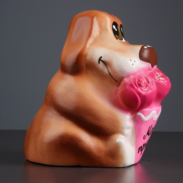 Копилка — универсальный вариант подарка любому человеку, ведь каждый из нас мечтает о какой-то дорогостоящей вещи и откладывает или собирается откладывать деньги на её приобретение. Вместительная Копилка "Щенок галантный: моей принцессе" х/р станет прекрасным хранителем сбережений и украшением интерьера. Она выглядит так ярко и эффектно, что проходя мимо, обязательно захочется забросить пару монет.