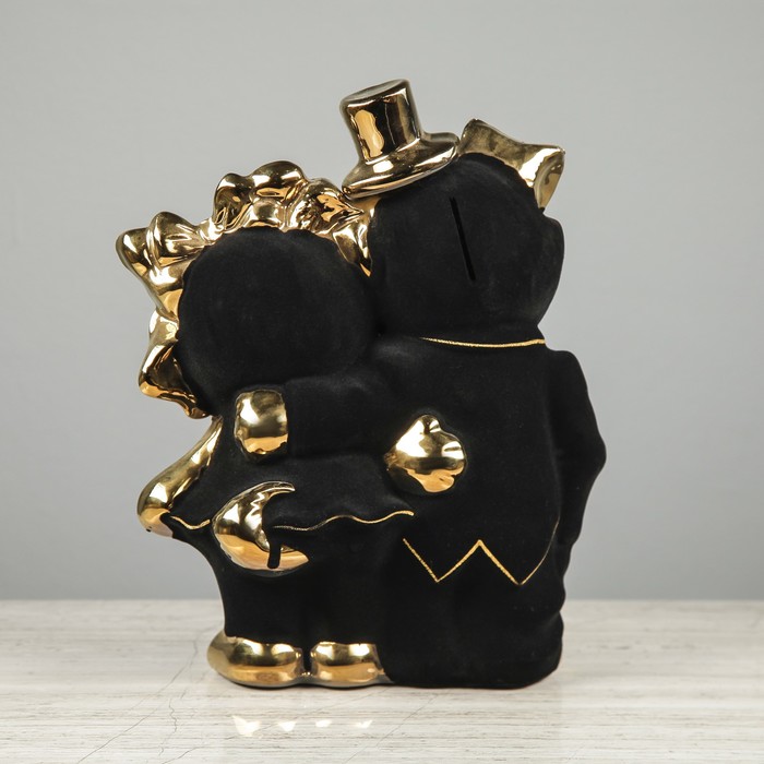 Копилка — универсальный вариант подарка любому человеку, ведь каждый из нас мечтает о какой-то дорогостоящей вещи и откладывает или собирается откладывать деньги на её приобретение. Вместительная Копилка "Собаки пара", флок, булат, чёрный станет прекрасным хранителем сбережений и украшением интерьера. Она выглядит так ярко и эффектно, что проходя мимо, обязательно захочется забросить пару монет.