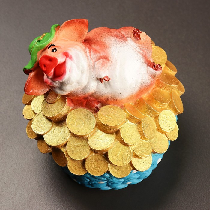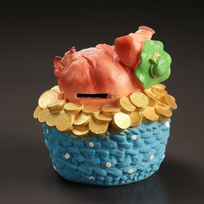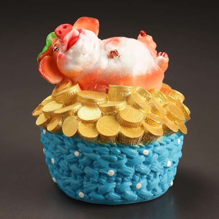 Копилка "Свинка на лукошке" цвет синий 15×16×17 см