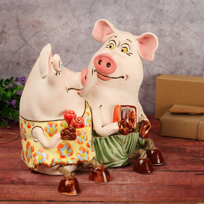 Копилка — универсальный вариант подарка любому человеку, ведь каждый из нас мечтает о какой-то дорогостоящей вещи и откладывает или собирается откладывать деньги на её приобретение. Вместительная Копилка "Свинки на свидании" станет прекрасным хранителем сбережений и украшением интерьера. Она выглядит так ярко и эффектно, что проходя мимо, обязательно захочется забросить пару монет.