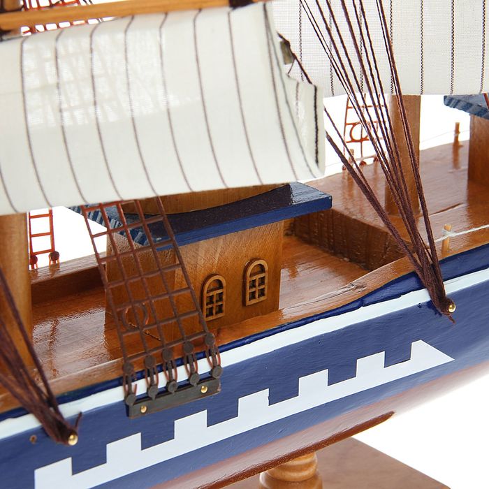 Корабль сувенирный большой «Трёхмачтовый», борта синие, паруса белые, 11 × 80 × 71 см