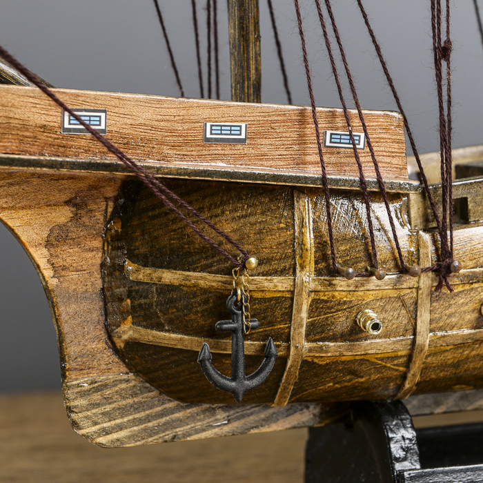 Корабль сувенирный средний «Трёхмачтовый», борта деревянные, паруса чёрные пиратские, микс, 45 х 9 х 37 см
