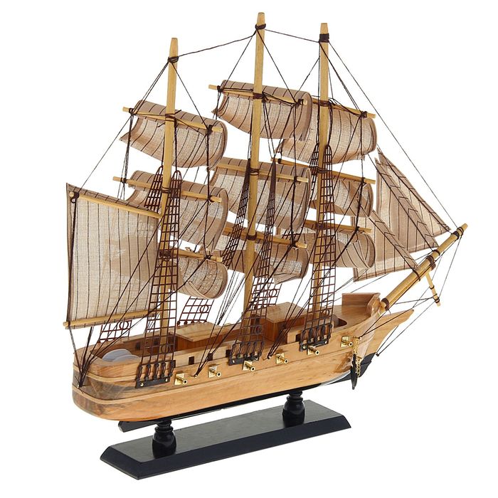 Морская романтика манит представителей сильного пола с самого детства, как десятилетнего мальчишку, так и взрослого мужчину. Корабль сувенирный средний «Трёхмачтовый», борта светлое дерево, паруса бежевые, 42 х 50 х 8 см - займет достойное место в любом доме, офисном пространстве или в рабочей зоне. Счастливый обладатель данной модели с гордостью будет демонстрировать корабль и выставлять на всеобщее обозрение. И неспроста, ведь такой сувенир не только демонстрирует статус, но и одновременно намекает на силу и непоколебимость натуры, готовность к трудностям, умение жить.