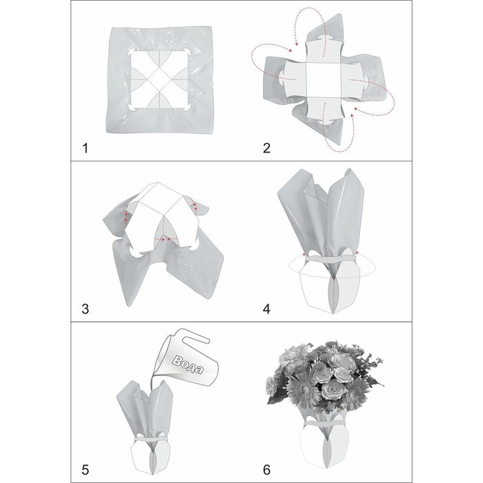 - Внутри коробочки находится плёнка. Так бабл-бокс превращается в сосуд, на дно которого добавляется вода или кладётся флористическая губка.