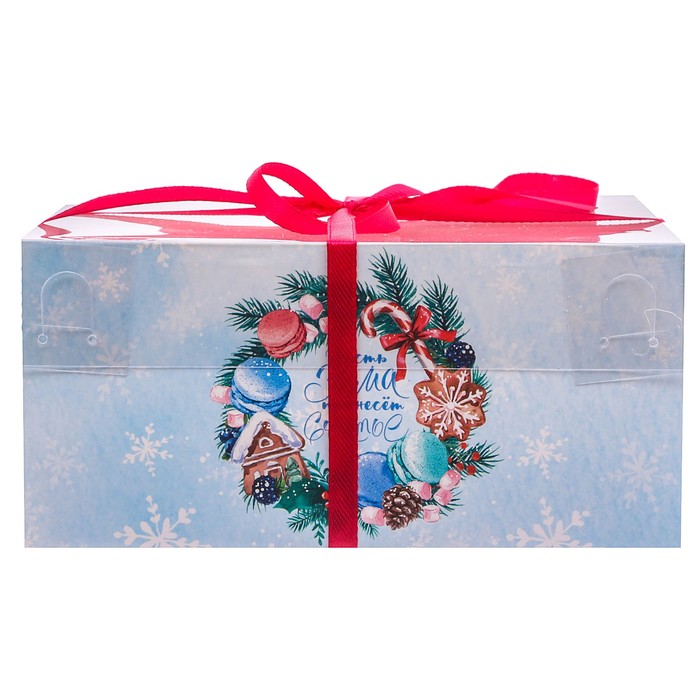 Коробка для капкейка с PVC крышкой «Пусть зима принесет счастье», 16 х 16 х 7,5 см