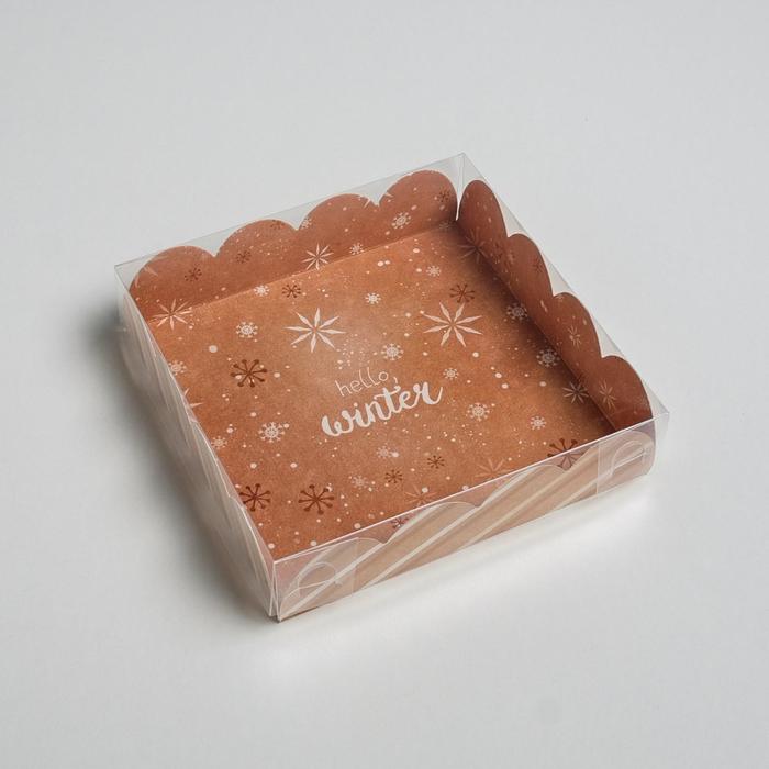 Коробка для кондитерских изделий с PVC крышкой «Зима», 13 х 13 х 3 см