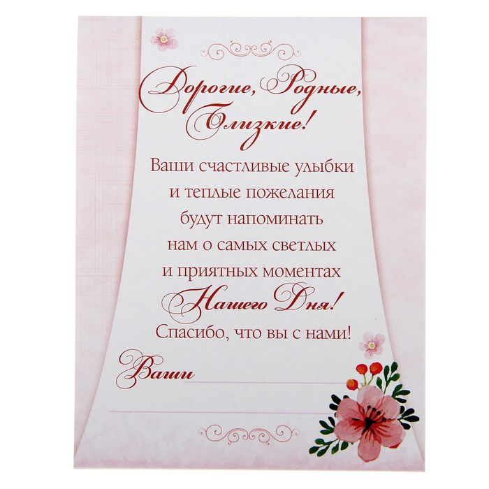 Теперь добрые слова и поздравления останутся с вами на всю жизнь. Через много лет, открыв эту чудесную коробочку, вы вместе со своей половинкой будете с улыбкой вспоминать о том, как всё начиналось.