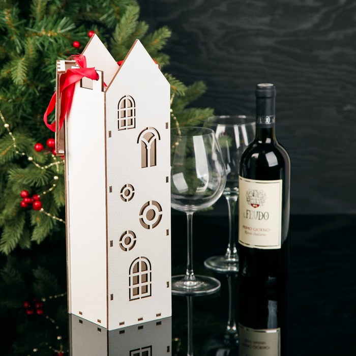 Коробка для вина в крышкой "Волбшество", 10,5 х 38,5 х 9,8 см, белый