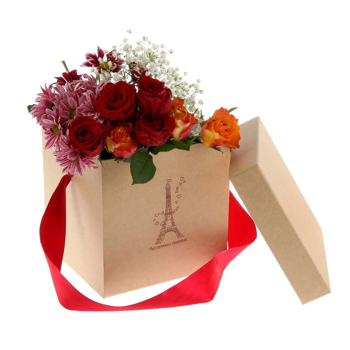 Коробка крафт под цветы "Из Парижа с любовью", 20 х 20 х 20 см
