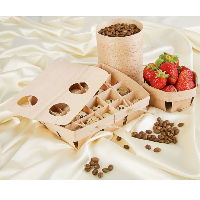 Дерево «дышит»: в его клеточном строении незаметно происходит постоянный кислородный обмен со внешней средой, и поэтому влажность внутри деревянной упаковки всегда на оптимальном уровне. Помимо этого, упаковка из шпона хорошо сохраняет косметику и кондитерские изделия.