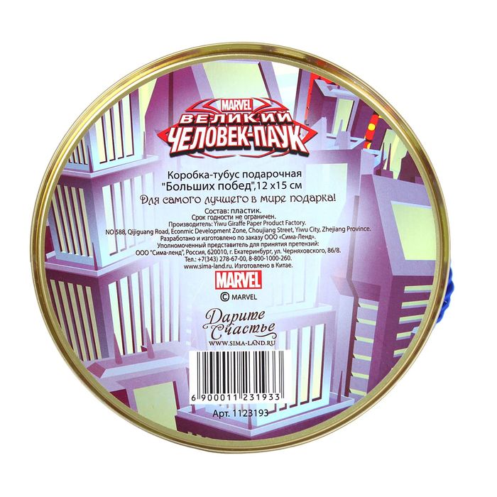 Коробка-тубус подарочная "Больших побед", Человек - Паук, + бонус