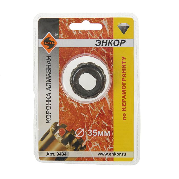 Стройте грандиозные планы, реализуйте свои идеи и не бойтесь знакомиться с новыми материалами и техниками. У вас всё получится, ведь у нас вы найдете инструмент как для бытового использования, так и для профессиональной деятельности. Может быть, Коронка по керамограниту "ЭНКОР", 35 мм, алмазная — это именно то, что вы всегда искали.