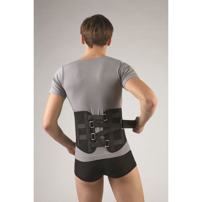 Ортопедический пояснично-крестцовый корсет снабжён уникальной системой периферической фиксации. Он дозирует нагрузку на позвоночник, разгружает и одновременно поддерживает в тонусе мышцы спины.
