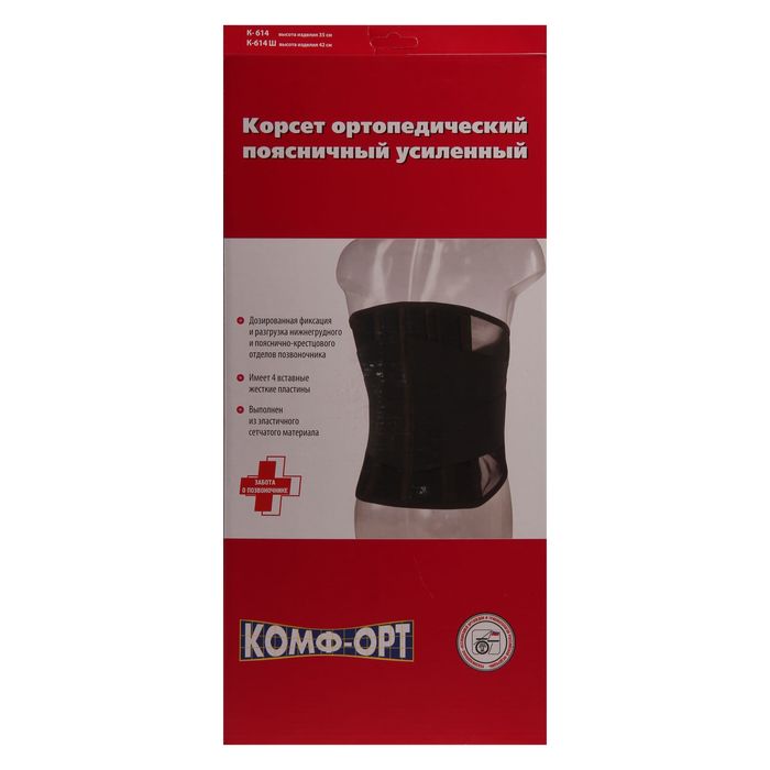 Корсет ортопедический, поясничный, с 4 рёбрами жёсткости, ширина 35 см, К-614, размер 3