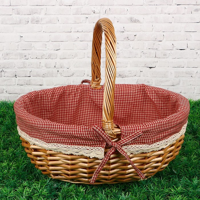 Корзина «Деревенька», с ручкой, 31х23 см, H=11/27 см, ручная работа
