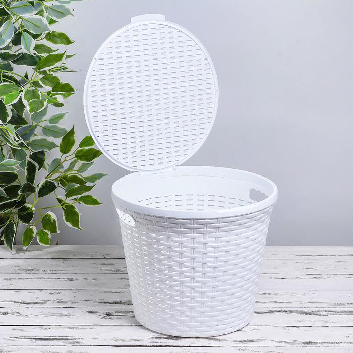 Корзина для белья круглая, с крышкой 15 л "Ротанг", цвет белый