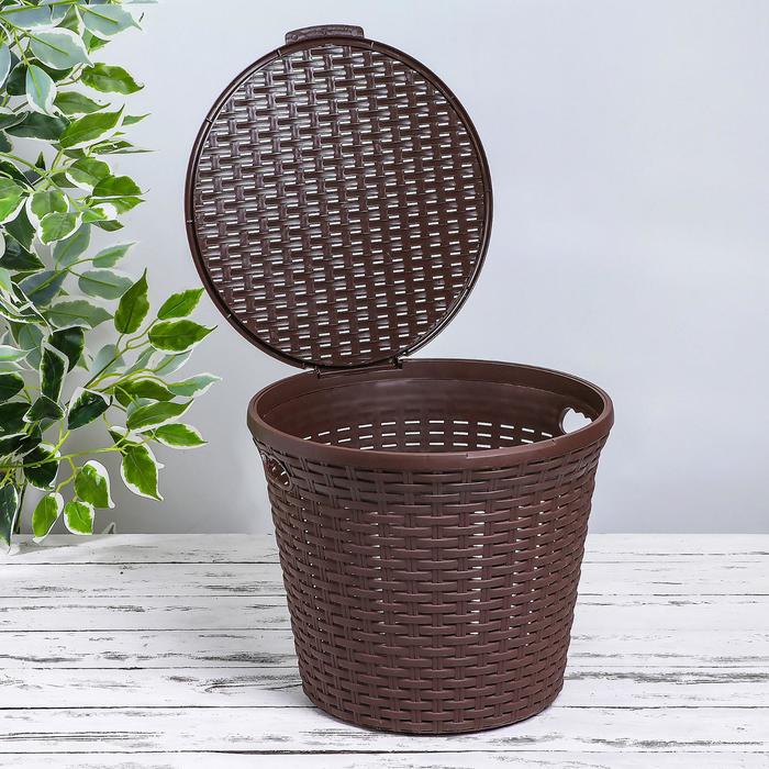 Корзина для белья круглая с крышкой 15 л "Ротанг", цвет коричневый