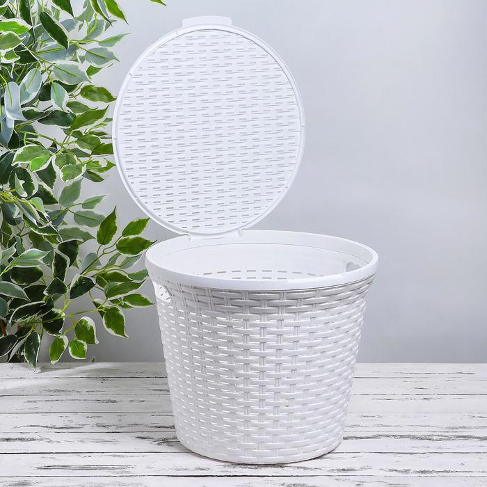Корзина для белья круглая, с крышкой 20 л "Ротанг", цвет белый