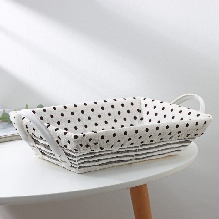 Корзина для хранения плетеная с ручками 31х25х10 см "Горох", цвет шоколад-белый