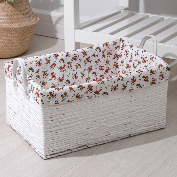 Корзина для хранения плетеная с ручками "Цветочки" 42х28х24 см, большая