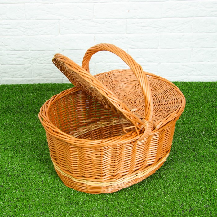 Корзина «Пикник», 10 л, с 2-мя крышками, дно - 25х18, верх 34х27, H= 20/33 см, ива
