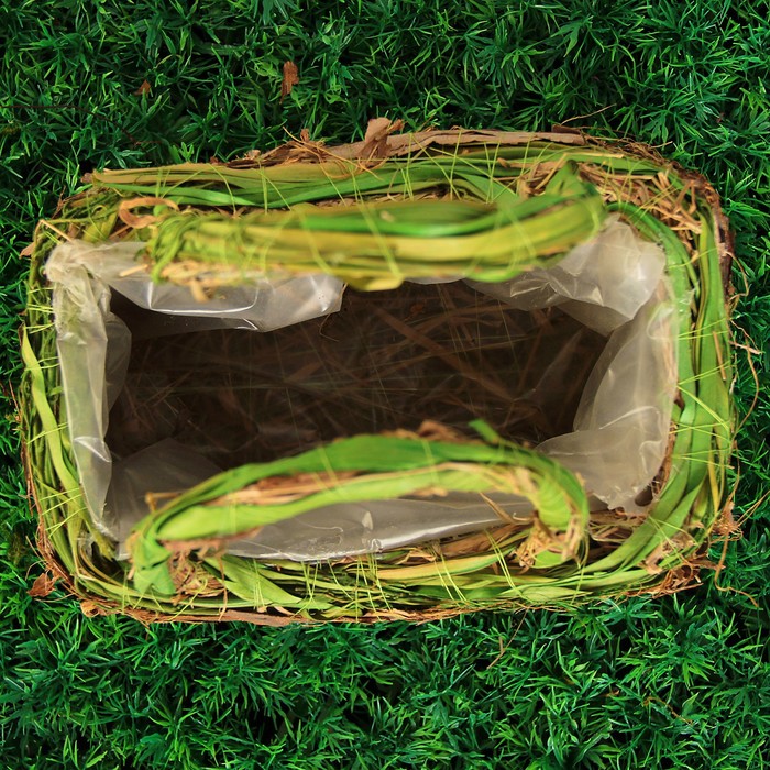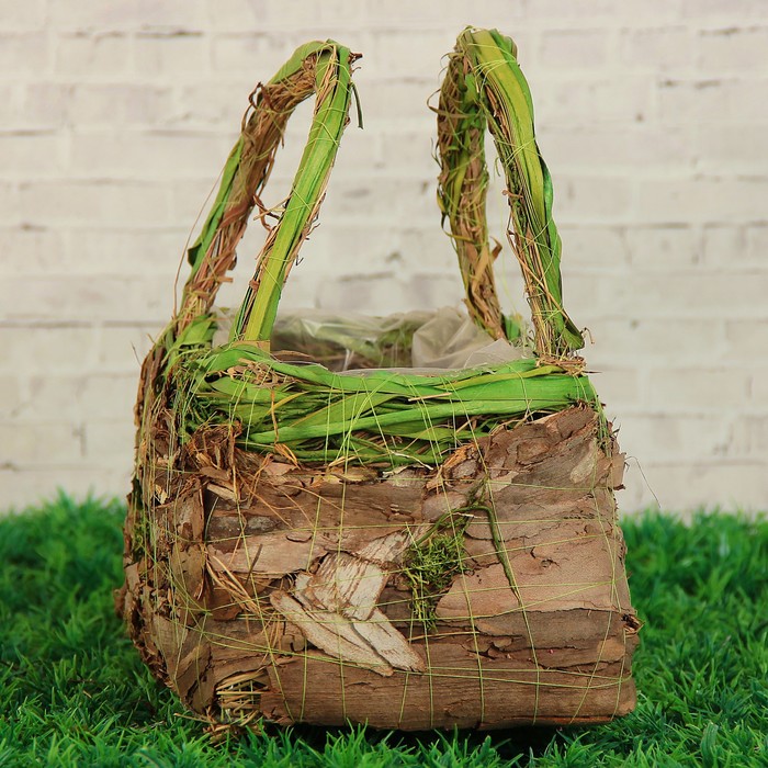 Корзина плетёная, ротанг, кора, 24x15x24 см, зеленый, натуральный