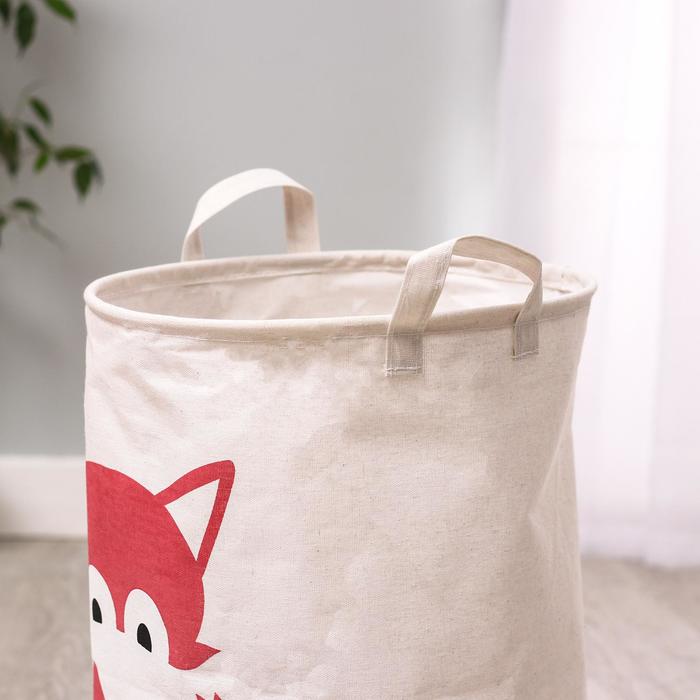 Корзина «Лисичка» сделана из плотного материала на хлопковой основе с водонепроницаемым покрытием. В конструкции отсутствует классический каркас из спиц. Округлую форму ёмкости поддерживает кольцо из проволоки.